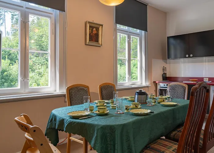Die Gäste des Apartments Bahnhof Paulinzella mit Sauna können die Annehmlichkeiten für Selbstversorger nutzen, wie z. B. Komplette Küche, einen Essbereich und einen Essbereich im Freien. Das 60 m² große Apartment Bahnhof Paulinzella mit Sauna ist nicht weit entfernt von der Bushaltestelle Paulinzella. Diese Unterkunft bietet außerdem eine Sauna zur Entspannung und Erfrischung.